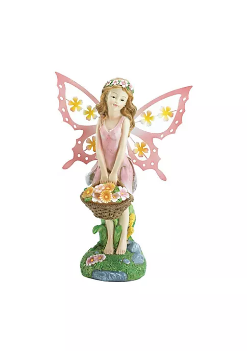 This pink fairy delivers lovely glow to your garden at night, and charming flowers by day. This garden statue features a pretty fairy with pink wings and lots of flowers. The solar panels soak up the sun by day to make her shine at night. Item Weight 1 pound. Dimensions: 7.75″ x 4.38″ x 10.8″. Material: Polyresin, Plastic Solar Panel.
