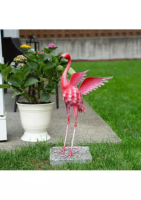 This flamingo yard statue is made with solid iron and features textured feathers and gorgeous details. The legs are an interesting twisted metal design. Add some fun to any outdoor (or even indoor!) space with this whimsical statue.