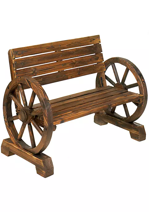Sits two people comfortably, and the wagon wheel armrests offer unique style.